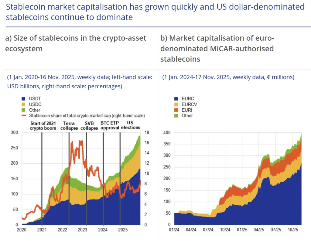 New ECB analysis warns that the rapid expansion of dollar-based stablecoins could increase financial stability risks for the euro area.