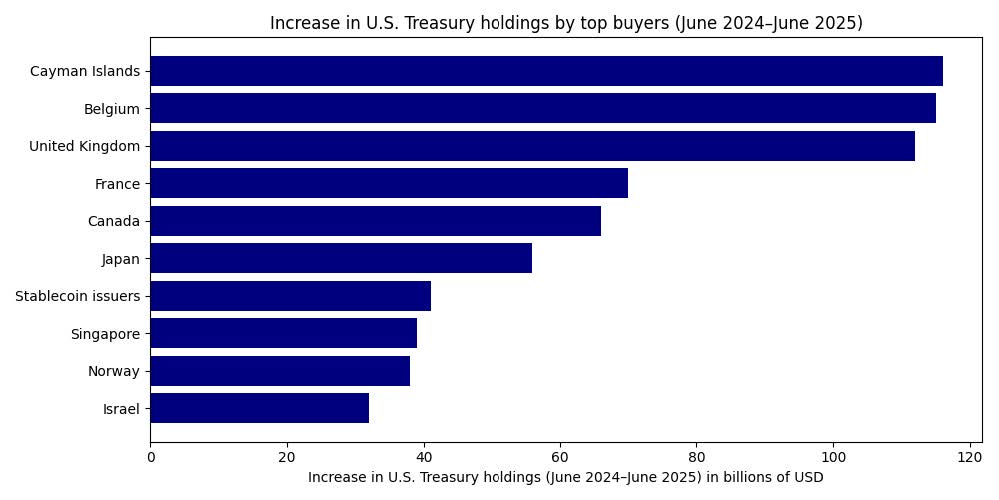 Under the law, entities issuing U.S. dollar-denominated payment stablecoins must back their tokens one-to-one with liquid assets including cash, Federal Reserve balances, insured deposits and short-maturity Treasuries. These requirements formalise the reserve structure already used by major issuers such as Tether and Circle, which collectively held $177.6 billion in Treasuries by mid 2025. That level made stablecoin issuers the seventh-largest purchaser of U.S. debt between June 2024 and June 2025.